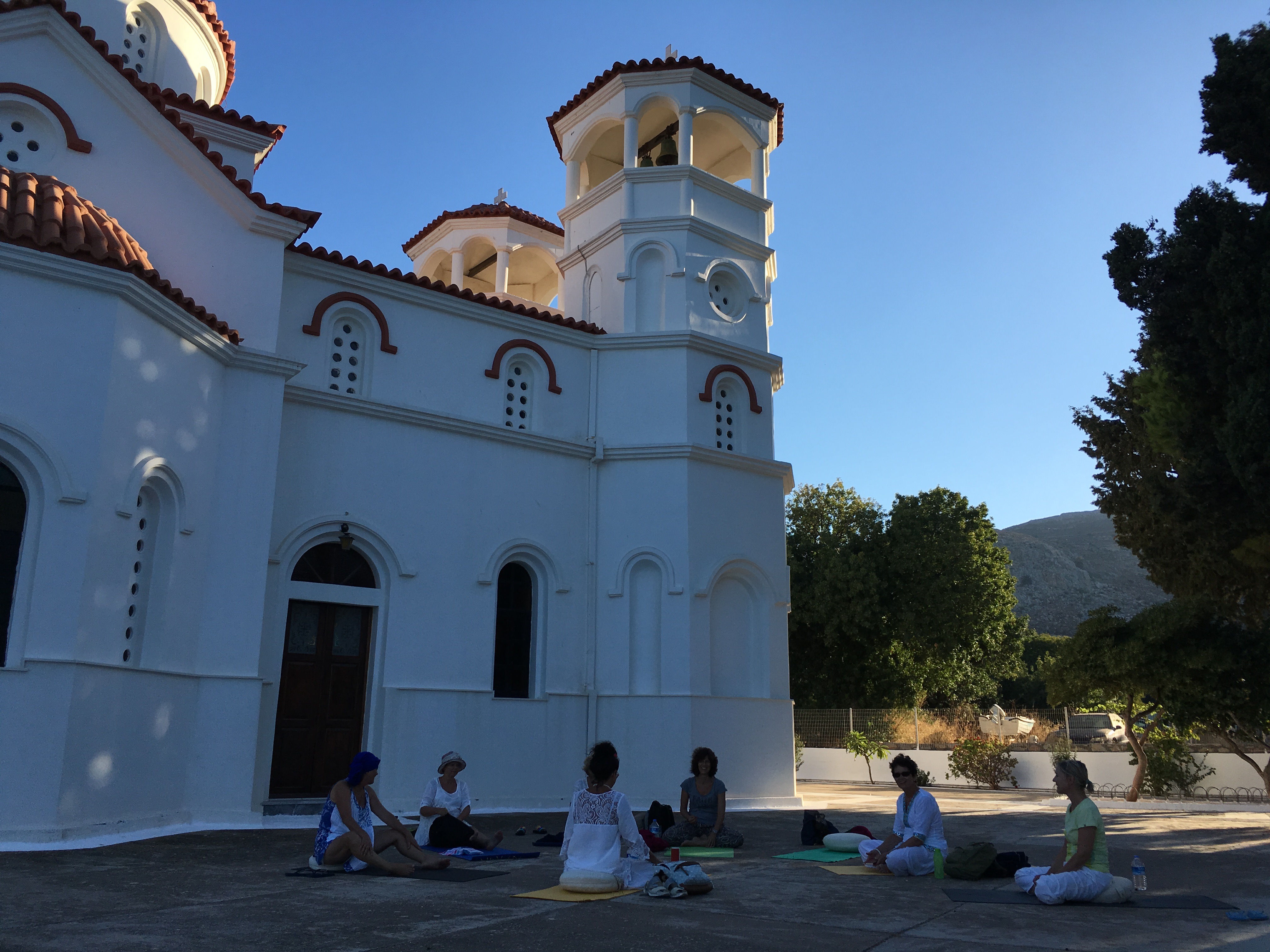 Yoga vor dem Kloster